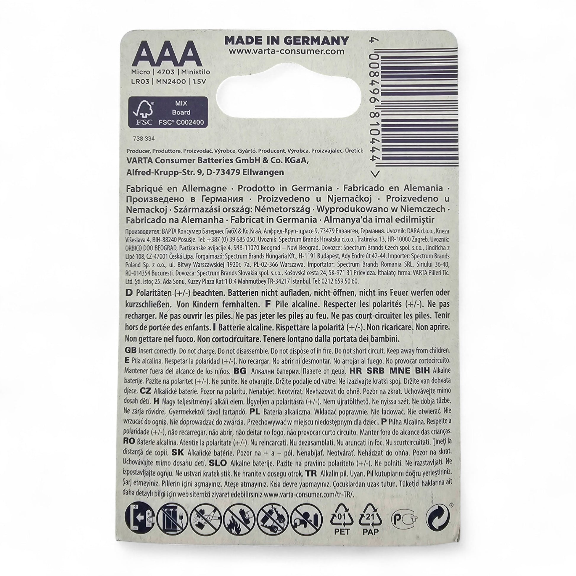 4 VARTA Batterien Longlife Max Power Micro AAA LR03 MHD 12/2030