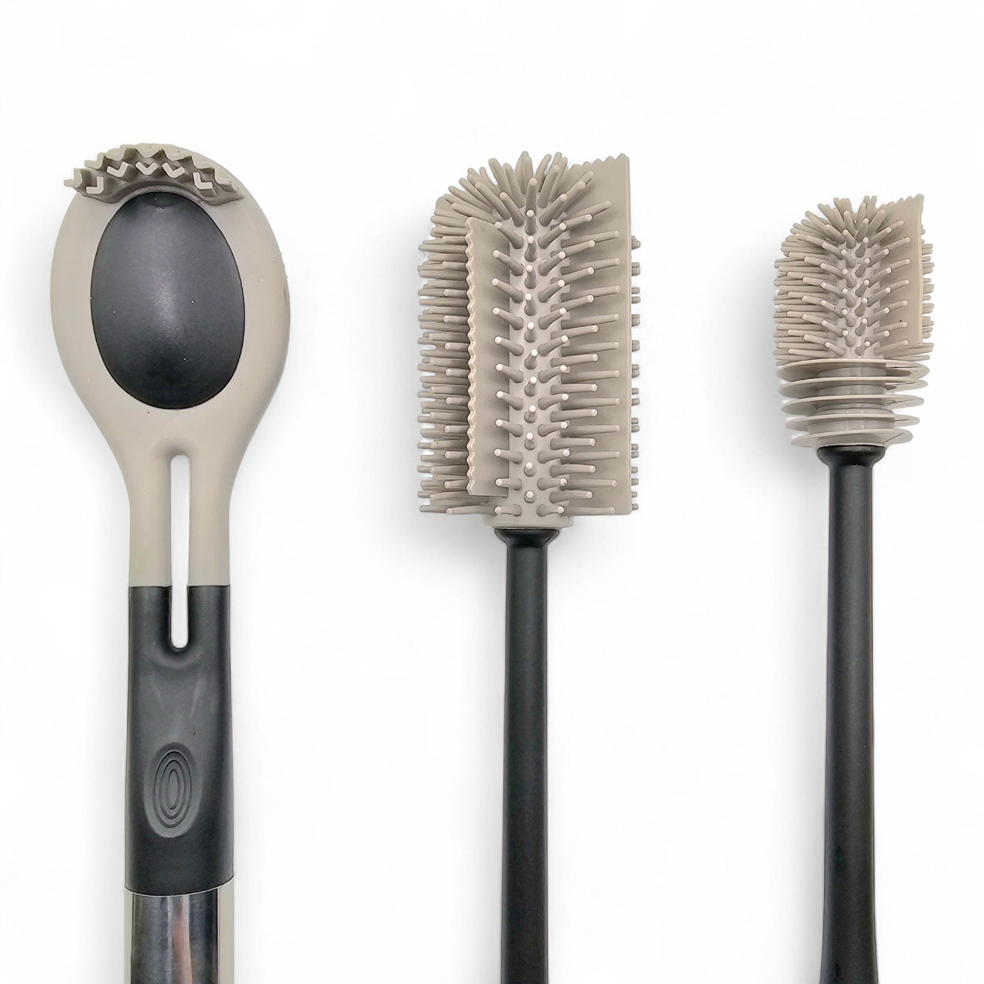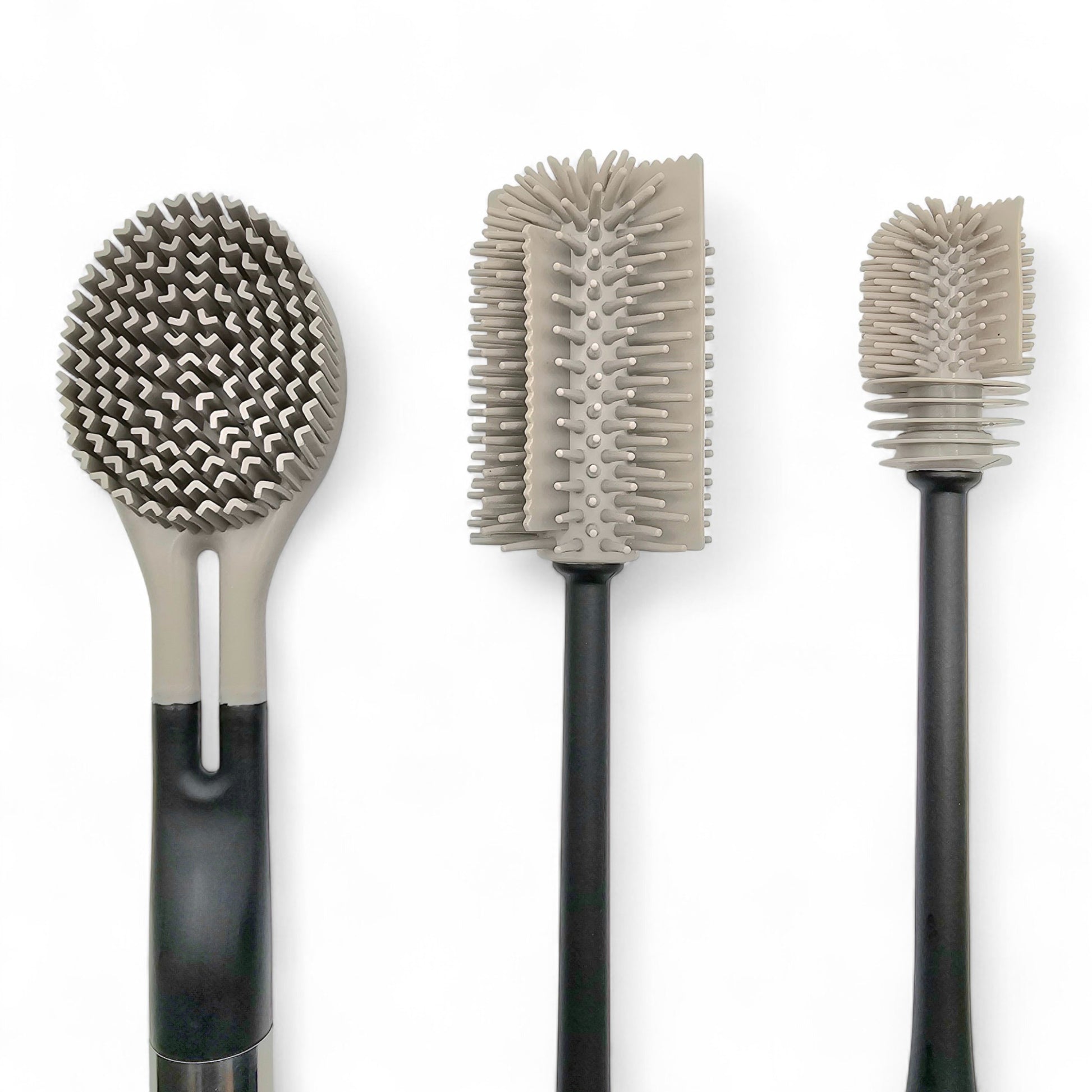 Das Set besteht aus einer groben Flaschenbürste, einer feinen Flaschenbürste und einer Spülbürste.