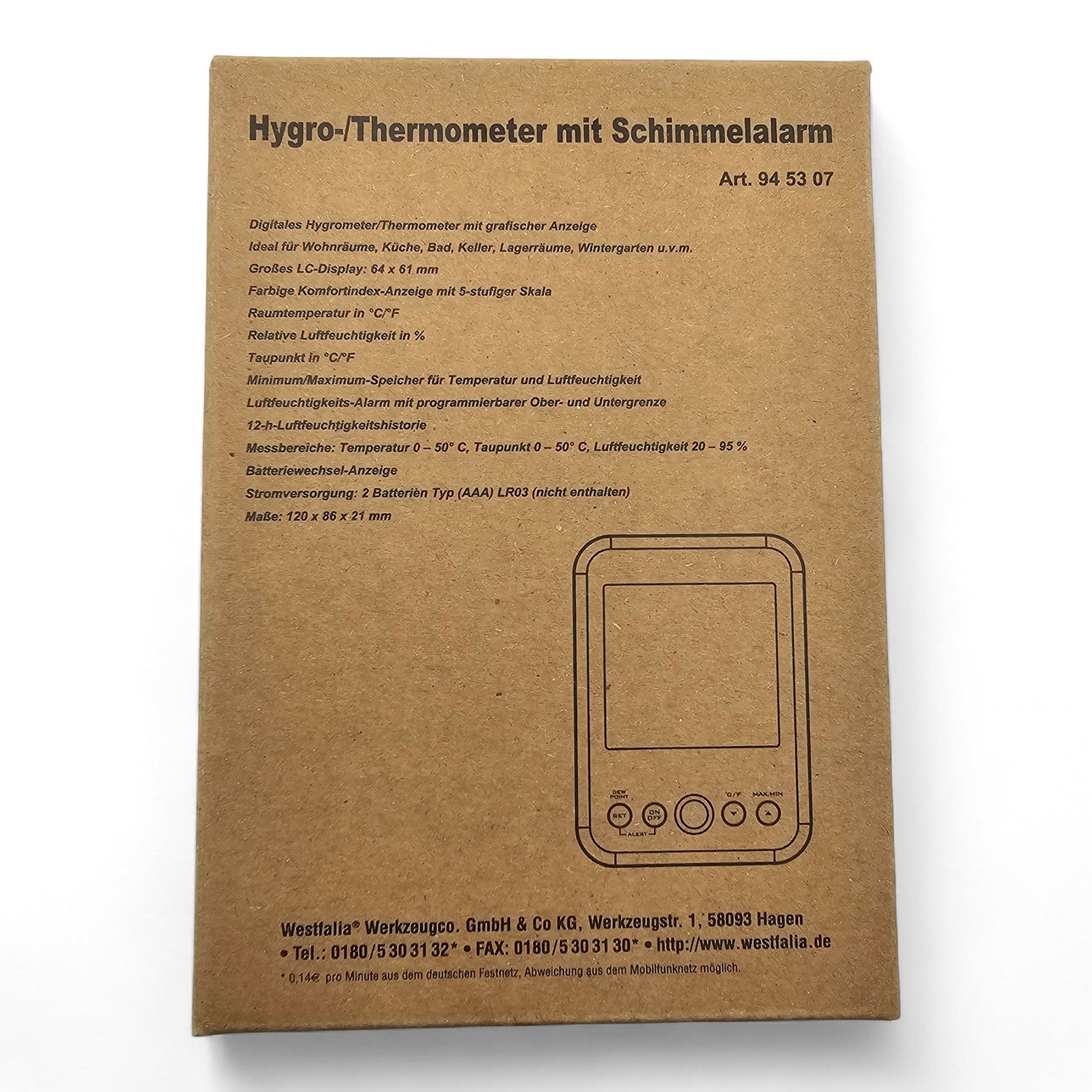 Westfalia Digital-Hygrometer/Thermometer mit Schimmel-Alarm und LCD-Display