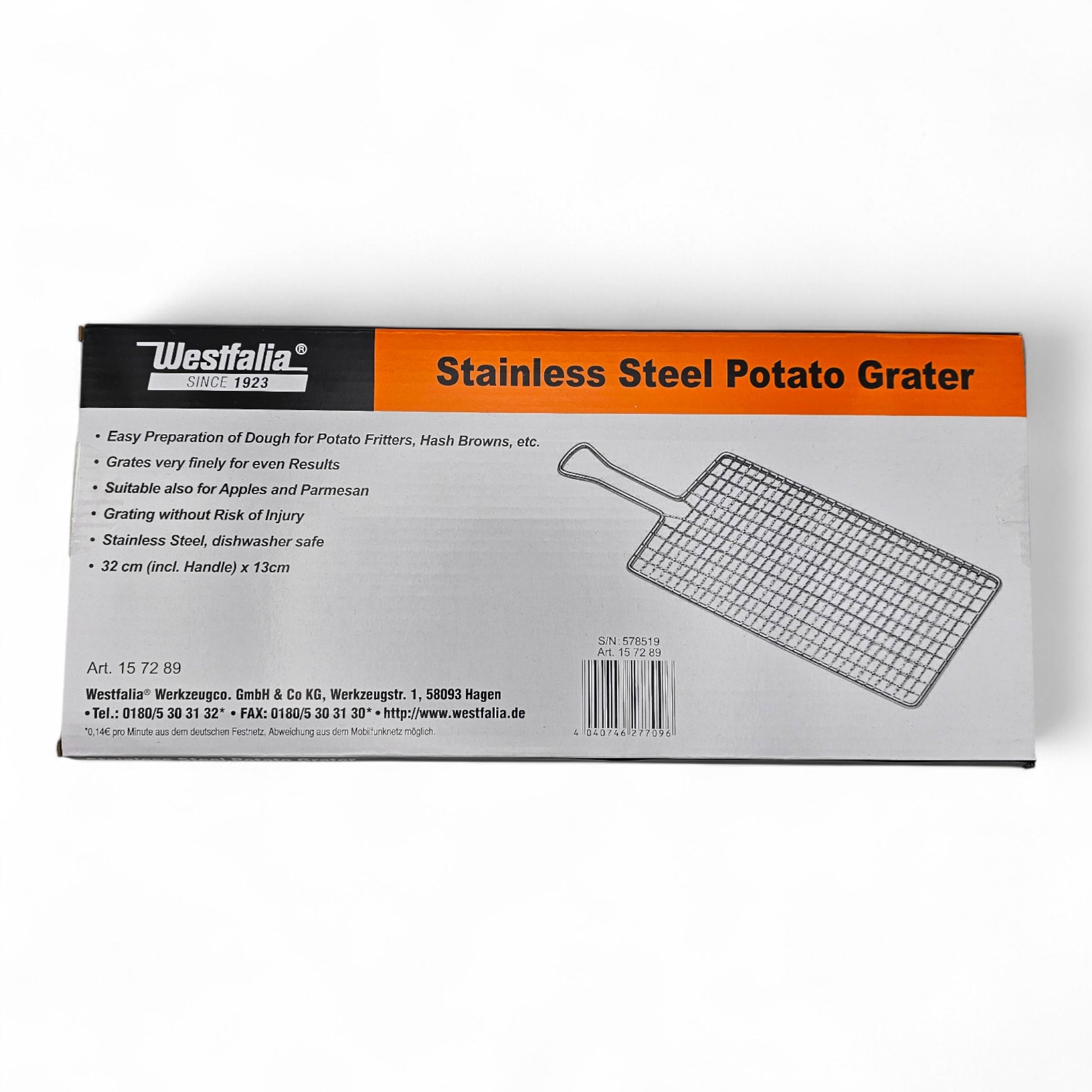 Mit der Westfalia Kartoffelreibe können Sie überall Ihre Kartoffeln fein zerreiben und anschließend z.B. daraus Reibeplätzchen, Rösti usw. zuzubereiten.