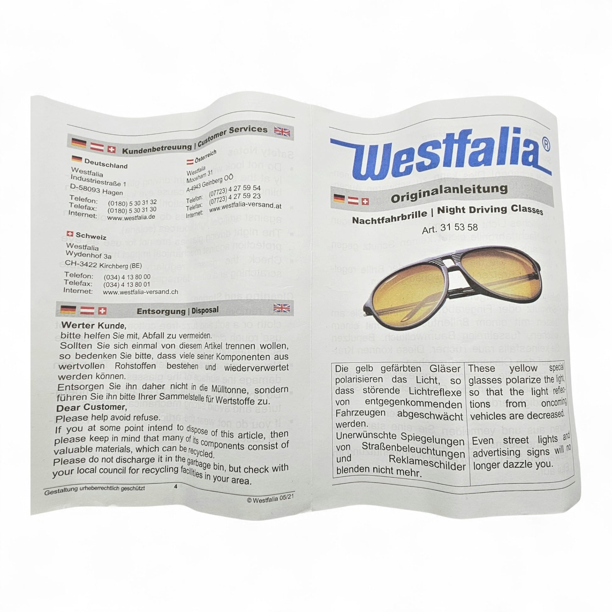 Westfalia Nachtfahrbrille Weniger Blendung durch Gelbfilter
